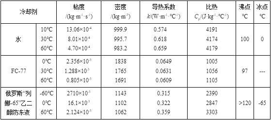 如在幾個(gè)表1中所列性能的常用冷卻介質(zhì)。